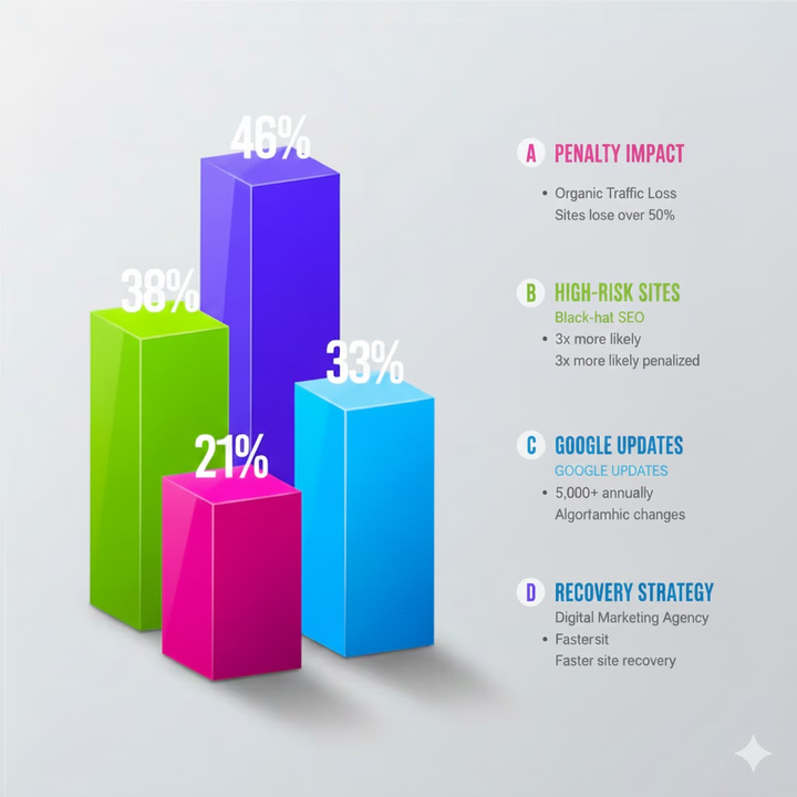 When rankings drop, fewer people find your site. Many websites lose 50% or more organic traffic after a penalty.